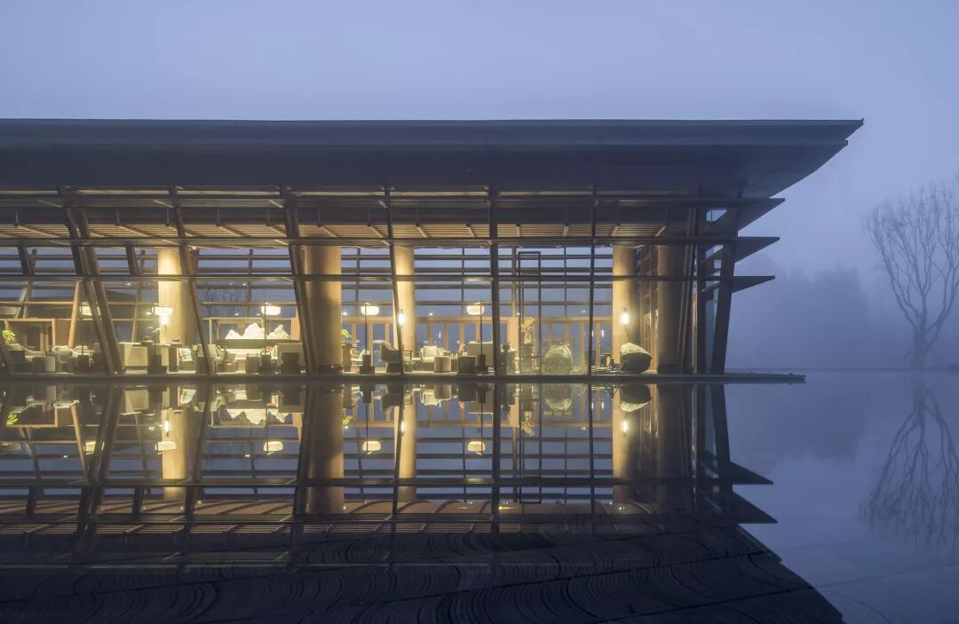 • 建筑设计从艺术大师吴冠中的名作《大宅》中受到启发,希望创作出体现东方建筑意蕴、集腾冲山水之美的独特作品,正所谓“双檐宛月一水间,环山揽园入画中”。