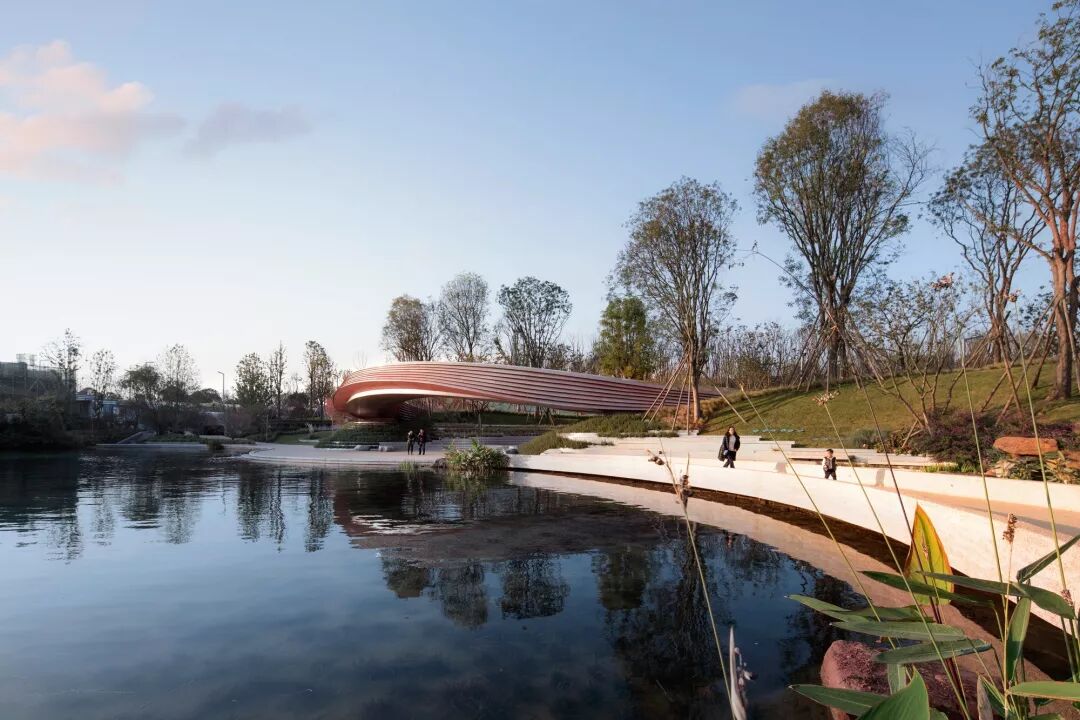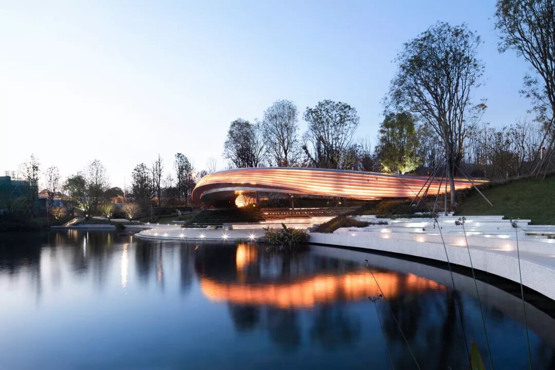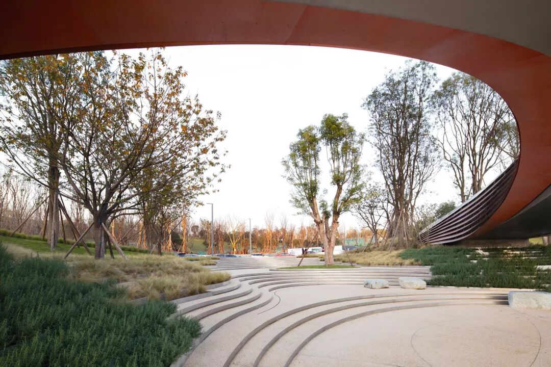 项目设计整体性较强,在满足上位规划的大前提下,进行了一场建筑与景观的艺术对话。空间营造富有雕塑张力,在生态功能空间的营造上提供了新的解题思路。
