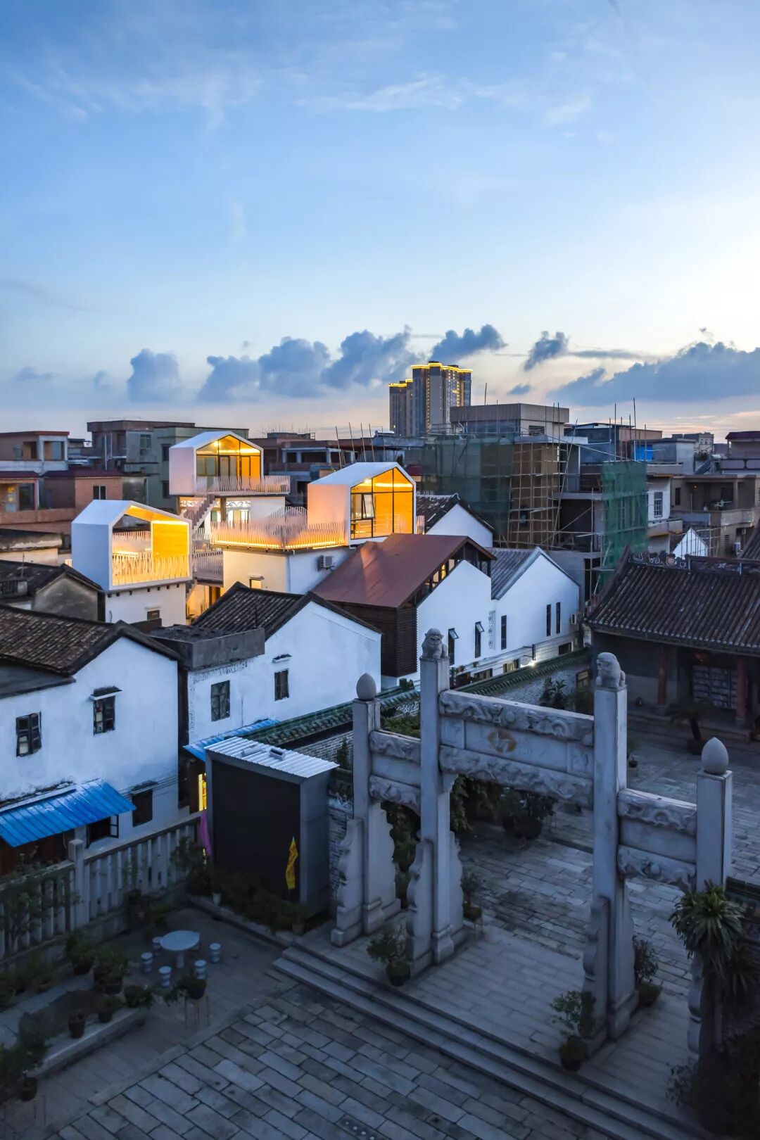 项目位于东莞市麻涌镇新基村,是一个十分典型的珠三角城郊密集型农村,项目改造中采取一种散点式的更新方式,将散落在整个村落当中已经荒废破败的房子租下来,改造为散布在整个村落之中的开放式民宿集群。新改造完成的民宿建筑与整个村落的旧房子,彼此之间不存在边界,呈现出一种相互交融的状态。