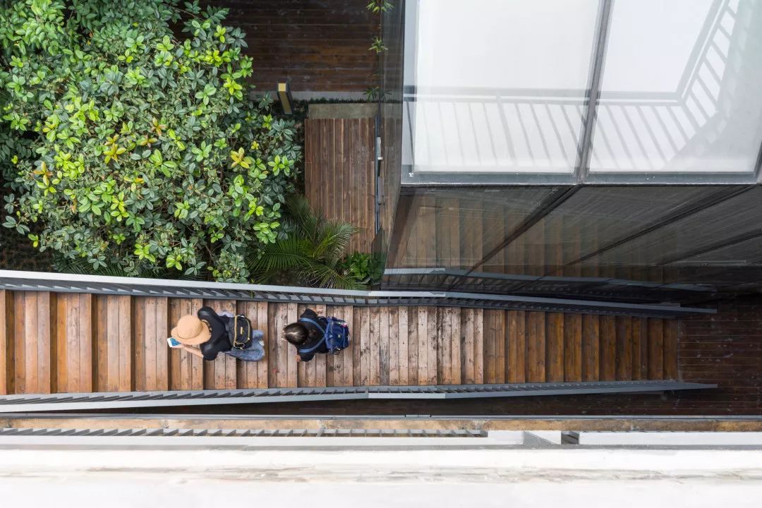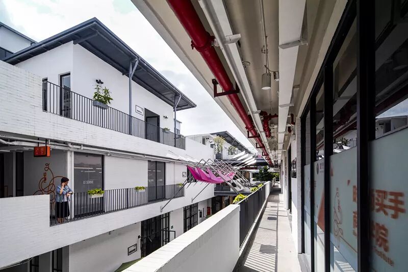 通过“以建筑面积换环境质量”的做法对建筑物进行梳理,降低建筑密度,利用体量切割的方式,创造出更适合不同业态的自由组合空间, 同时插入中庭、露台、通廊,把大小不同的空间连接起来,组成了整个园区的“慢享”系统。