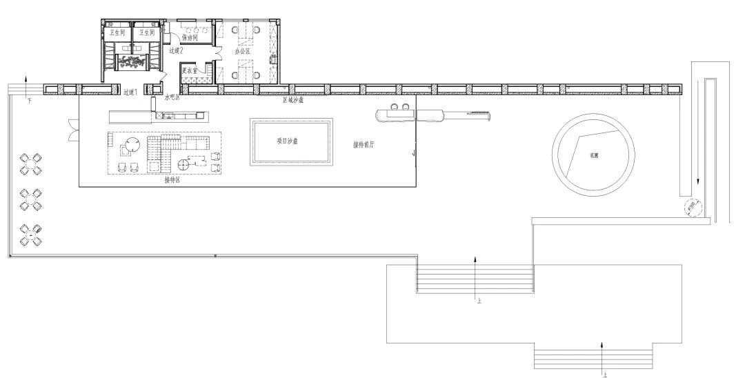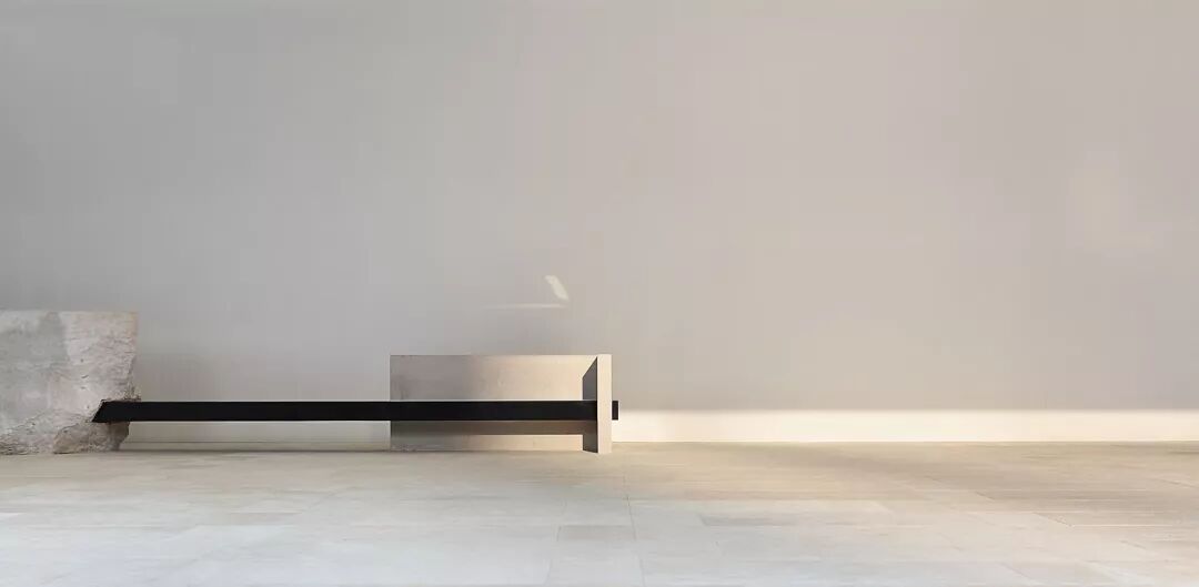 接待处的两块石料将原石一分为二而成, 其一化为接待处,其二化为室外的休息区。原始、纯粹的石头经过设计的巧工雕凿后, 既保留了自身的形态,又在这个纯粹的空间中, 呈现出不同的功能形态和艺术感。
