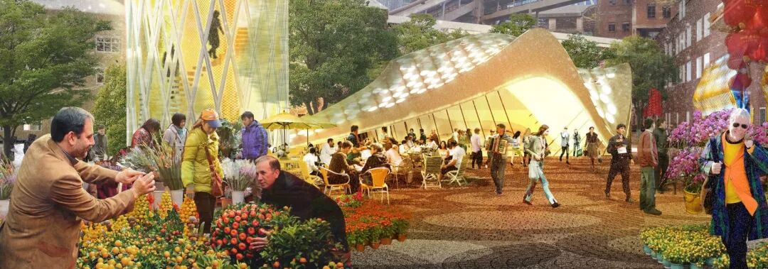 项目位于北京市通州核心区;距北京副中心2公里,将成为副中心的一个富有艺术色彩、充满文化气息、创新生活美学与生活品质的文化智慧型社区。项目是一块径深不足十五米的下沉空间,两侧距离也不过二十多米,在有限的空间里,设计团队通过空间的衍生和立体化处理,形成体块之间的对话;提出“场共同体”这个理念,以开放和共享作为空间精神,重新有意识地构建真实的对话,真实的交往关系,以消除异化的日常生活,构建一个更加积极参与的日常生活场景。