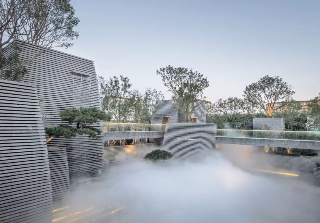 一个下沉空间、五座特色石塔,烟雾迷离、绿意悠悠,构成了当代通州景观项目的视觉印象。设计理念聚焦“场共同体”这一概念,在20米乘20米有余的下沉庭院,承载了一个微观的大千世界,空间互存共生,景致层层叠叠,看与被看,你中有我。项目以极简的材料组合构建出一种纯粹而宁静的诗性,看似单一的质感内里充满优雅细节。建筑如山水,山水如建筑,场所有灵魂,一步一情怀,人在其中,望山、穿山、越山、玩山、坐山,步移景迁,清心悦目。