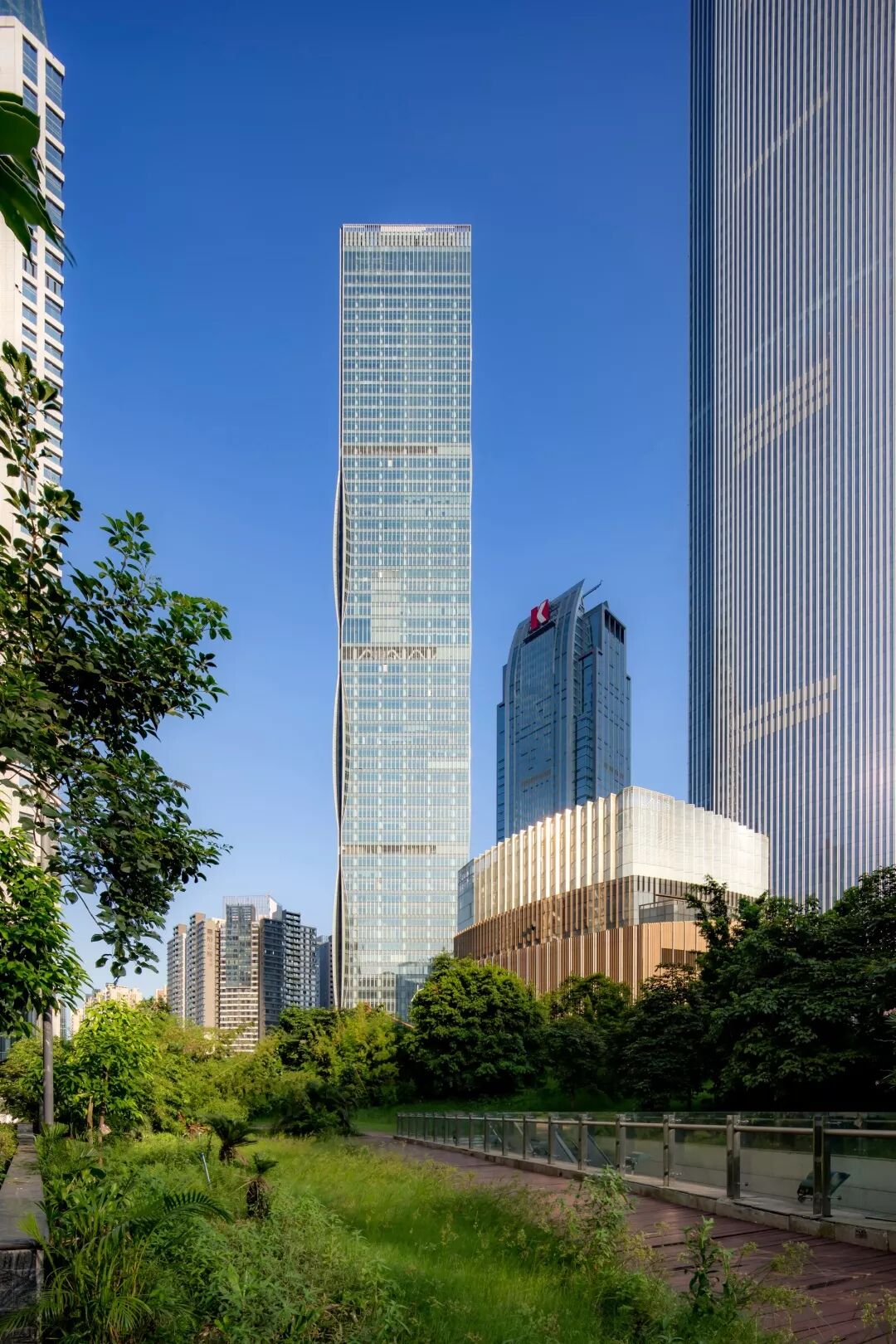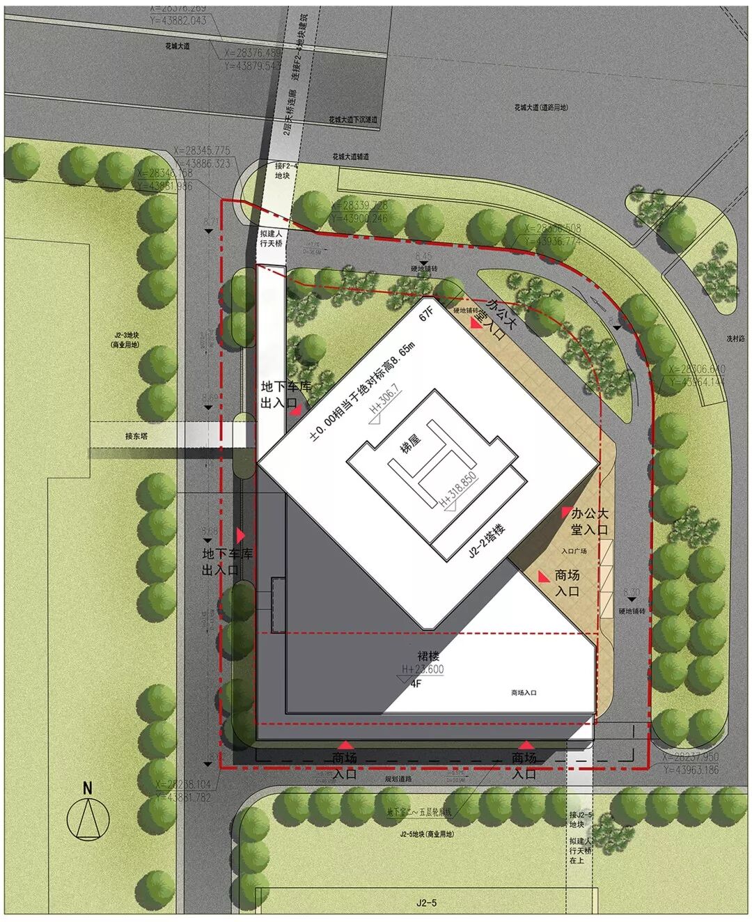 项目位于珠江新城CBD核心区域,周围超高层建筑鳞次栉比,与双塔交相呼映。建筑总高318米,由地下5层地上67层组成,功能为超高层商业综合办公楼。规划布局上将超高层塔楼转体45度,消除紧凑布局带来的压迫感,提升自身及周边建筑的景观品质,也给本身狭窄的地块形成了两个较大尺度的入口缓冲广场。建筑塔楼设计上采用经济合理的方形平面,但又富有创意地利用建筑转角线的开合变化,给规则的建筑体型带来了曼妙的曲线变化,形成时尚简约又富有辨识性的建筑造型。