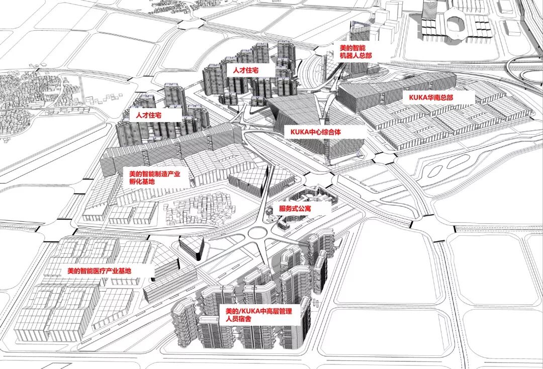 KUKA机器人华南总部、美的智能制造产业孵化基地、库卡中心综合体、美的智能医疗产业基地、住宅配套板块 、美的智能机器人总部。