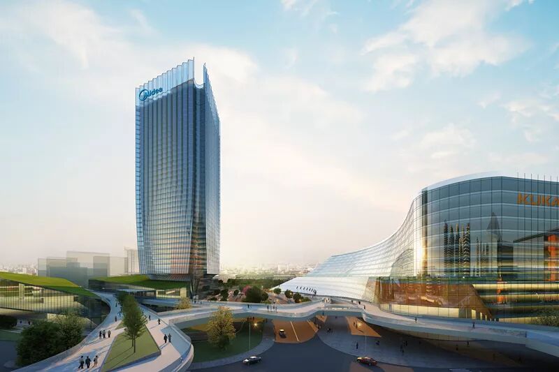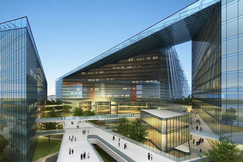 德国库卡集团的收购。同年,美的集团联合库卡集团,在顺德会展城核心区域,规划打造美的库卡智能制造科技园。并邀请到GMP、德建、迈思等多家国内外建筑事务所,参与本项目概念规划方案竞赛。迈思作为唯一一家被邀请的中国设计单位,在本次激烈竞赛中,荣获方案综合评分第二名。