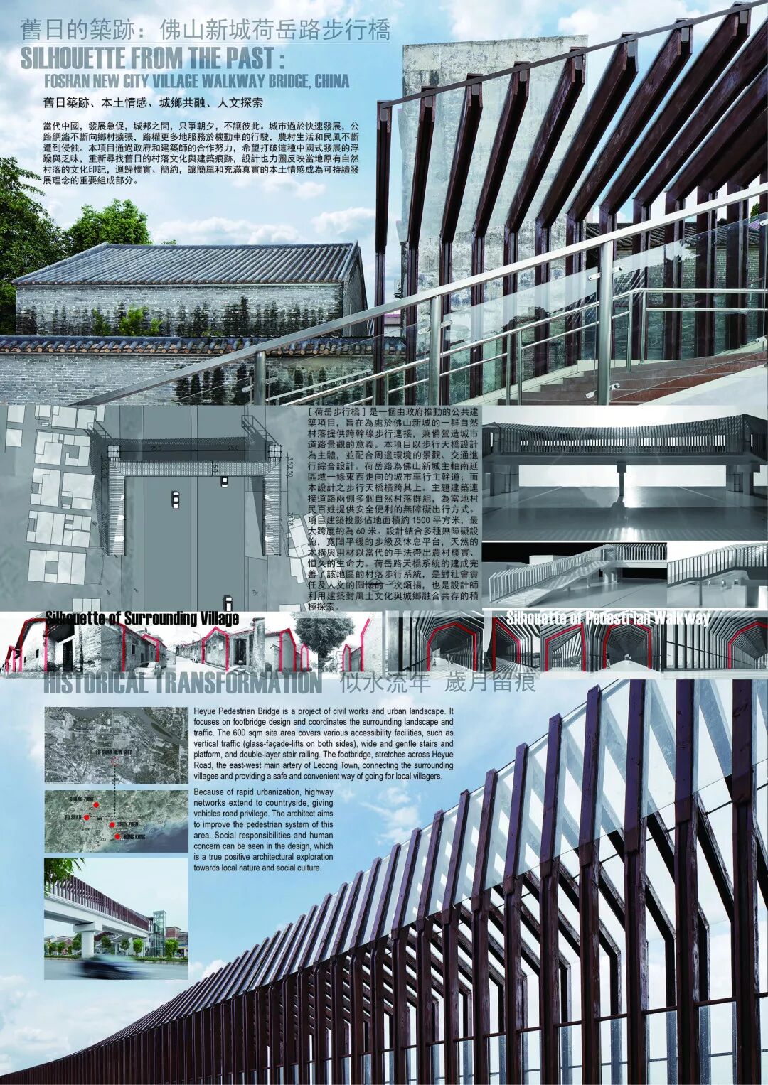 当下中国,城市快速发展,汽车网络不断向乡村扩张,路权更多地服务于机动车的通行,农村生活和民风不断遭到侵蚀。项目通过政府和建筑师的通力合作,希望打破这种中国式发展的浮躁与乏味,重新寻找旧日的村落文化与建筑痕迹。设计力图反映在地的文化印记,回归朴实、简约,让简单和充满真实的本土情感成为可持续发展理念的重要组成部分。项目以步行天桥设计为主体,配合周边的景观、交通进行综合治理。设计结合多种无障碍设施,宽阔平缓的步级及休息平台,天然的木构与用材以当代的手法带出农村朴实、恒久的生命力。荷岳路天桥系统的建成完善了该地区的村落步行系统,是对社会责任及人文的关怀的一次颂扬,也是设计师利用建筑对风土文化与城乡融合共生的积极探索。