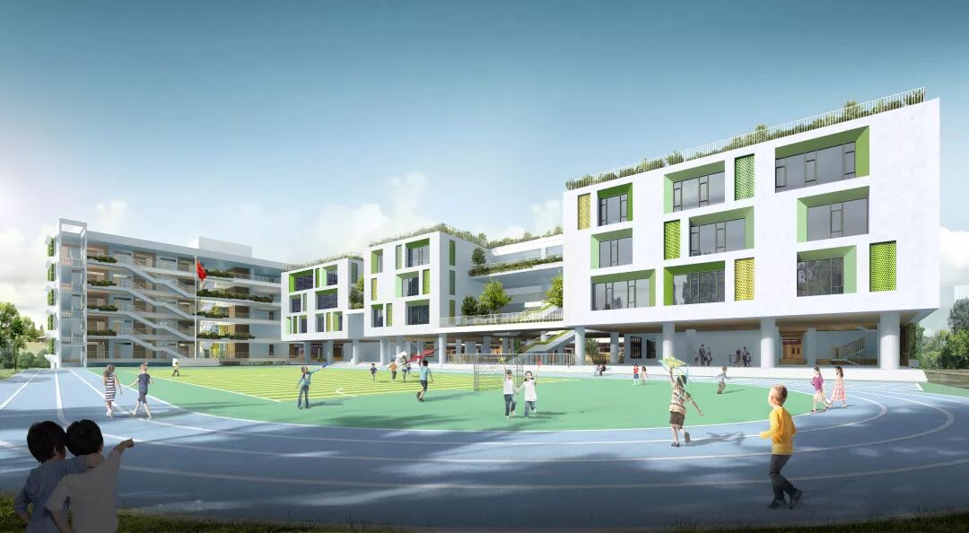 本项目为36班小学,设计意在探索城市高密度校园的解题思路,以“叠园——亲近自然的高密度校园”为设计概念。在满足扩容需求的同时,提升对原有场地的尊重,将公共活动空间立体化,使平面布局开放而灵活。通过立体化的活动场地和绿化系统,辅以绿色表皮的设计,打造亲近自然的校园环境。采用了构件降噪的整体立面设计、雨水收集系统等环境友好的技术策略,赋予校园绿色系统的可持续性。同时,开放多元的空间设计,可包容未来发展的多种可能。
