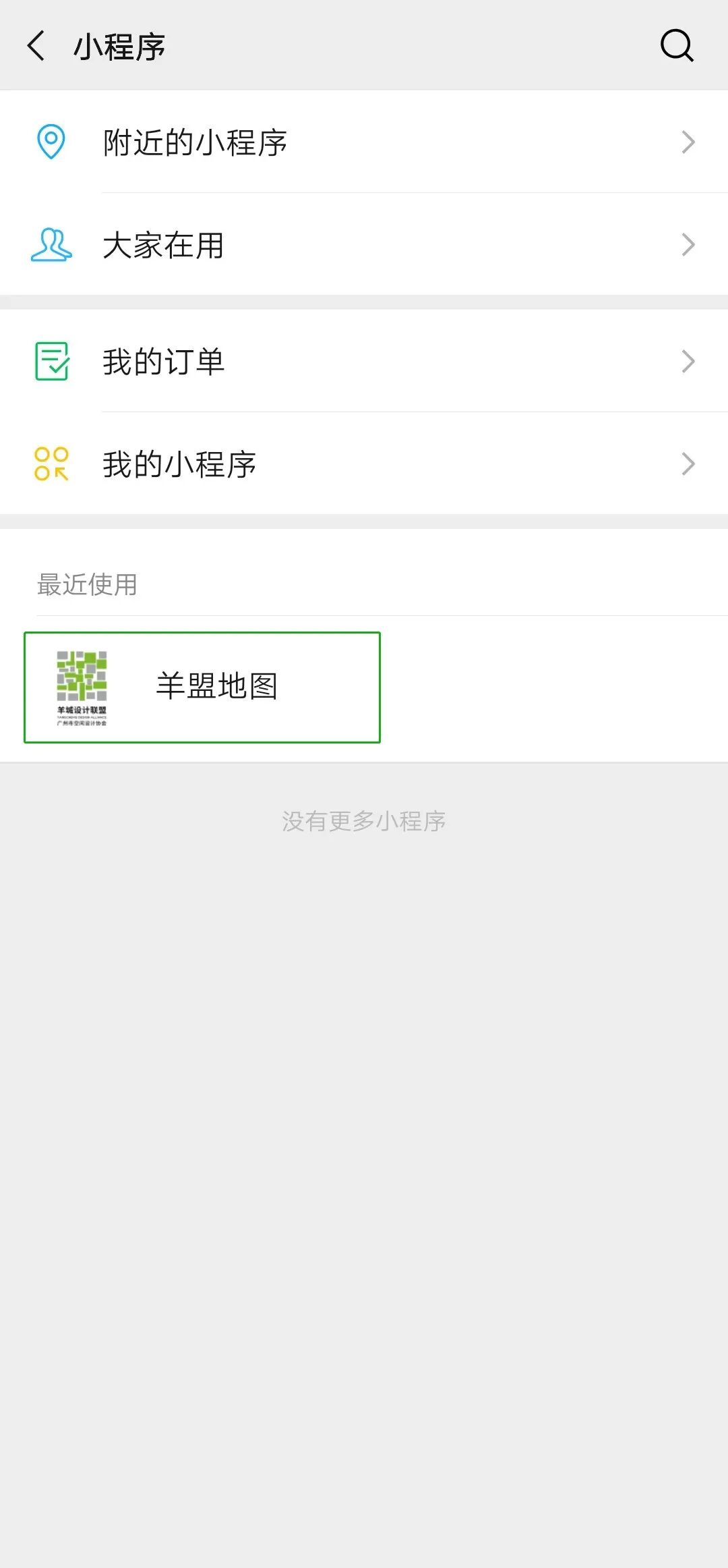 进入过“羊盟地图”小程序后,便可在微信发现页面“小程序”→“最近使用”中找到“羊盟地图”,以后便可更方便地查看羊盟会员单位分布啦。