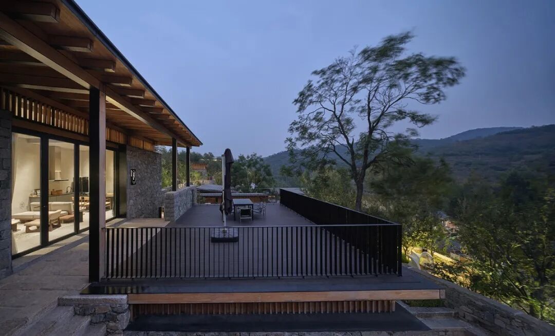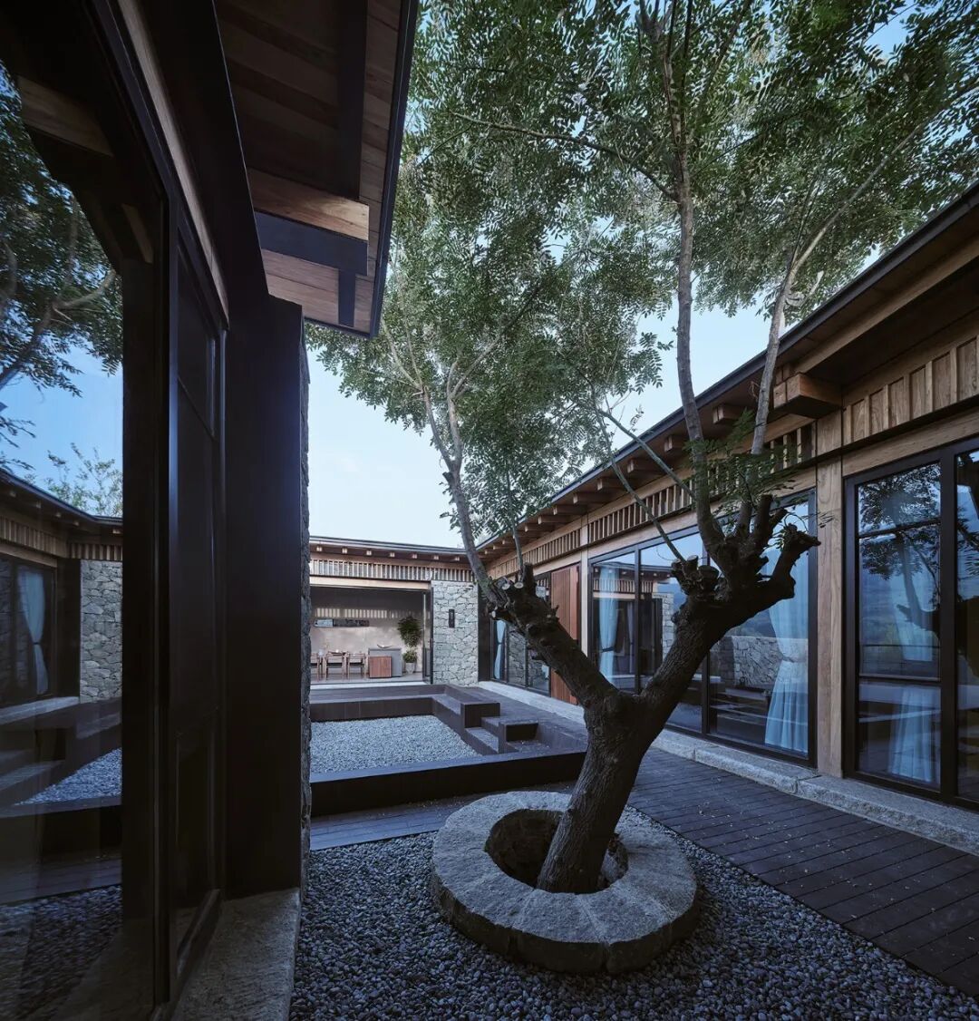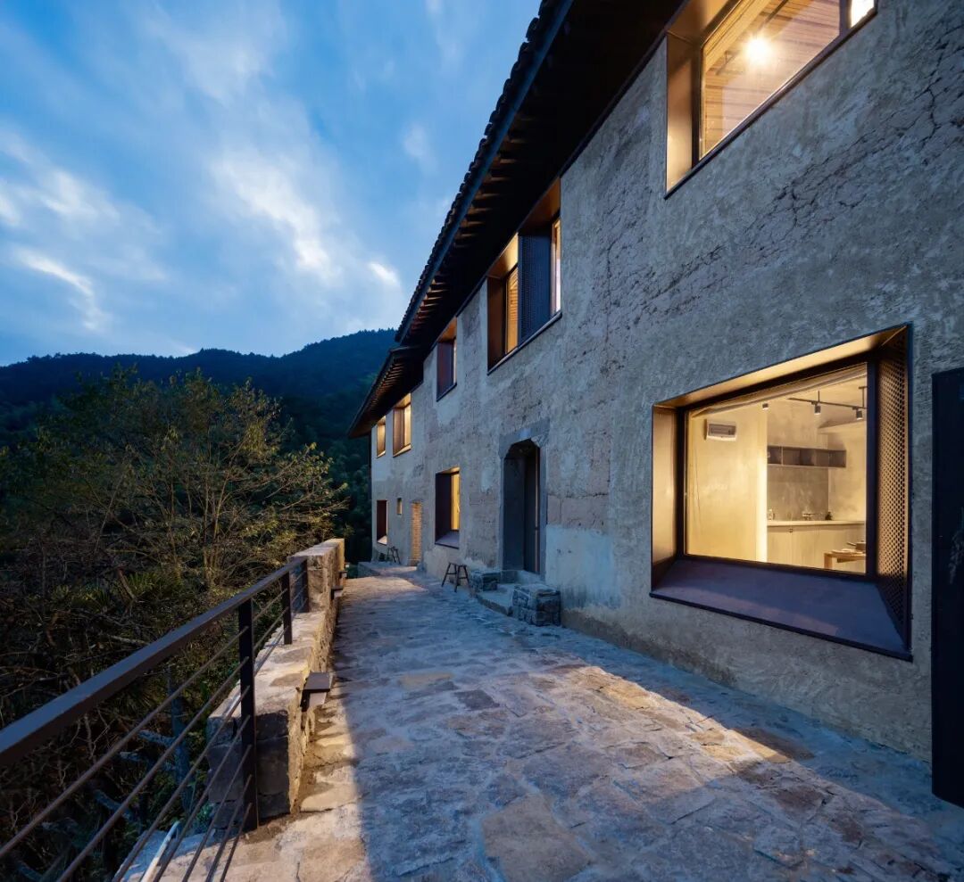 轻钢结构在建筑内部为现代使用空间搭建了轻盈骨架,植入满足当代生活方式的使用功能和空间品质,而传统夯土墙则在外围包裹了一层尊重当地风貌的厚实外衣。同时就地取材,对旧材料的回收和再利用,从而实现“新与旧、重与轻、实与虚”的对立统一。