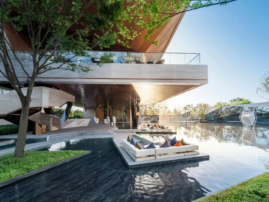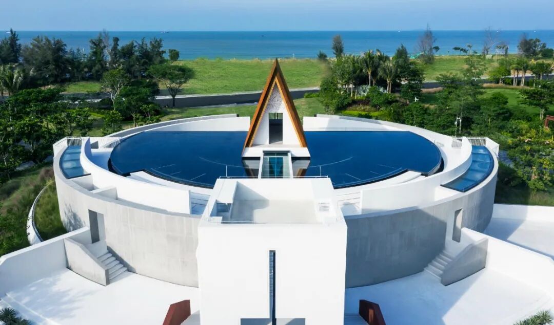 现代流动的设计手法、遇上崖州的海风与夕阳,便构筑起浪漫度假的景观体验,将其作为浪漫文旅小镇的接待目的地,浅海时光里展示区让参观者更深地感受到崖州极致的风光与落日,同时也在游走中感悟爱情,感悟生活。