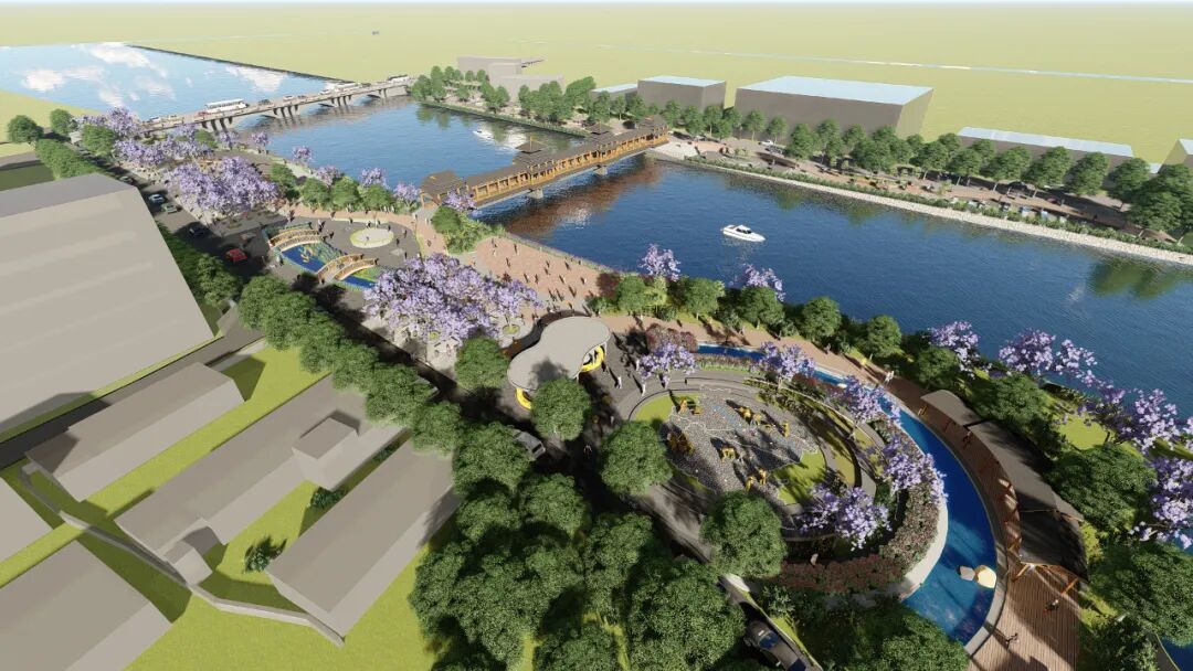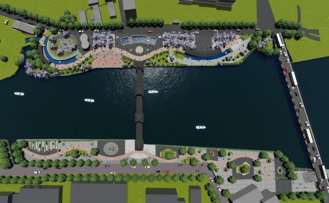 吕田镇位于粤港澳大湾区的最北部,其镇区中心的滨河广场建设从解决现有问题出发,做到让居民“望得见山,看得见水,记得住乡愁”。设计策略分为三方面:适应自然环境,引入流溪河活水,改善提升镇区中心整体风貌;满足社会需求,架设步行桥,解决交通不便和交往场所不足等问题;彰显历史文化,挖掘吕田四千年历史与地域美食文化,提升居民情感归属。