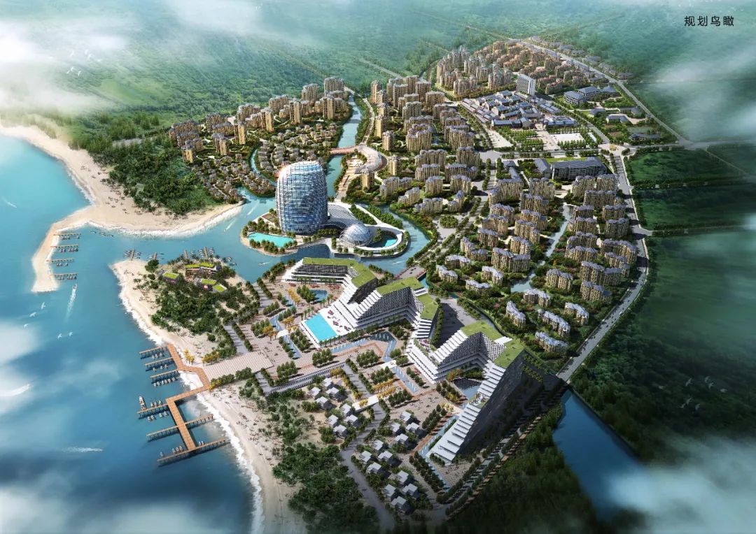 项目位于海南岛西南部东方市板桥镇,西临北部湾与越南隔海相望,拥有得天独厚的海景资源和特色的少数民族文化。规划中,主入口广场、景观大道、商业空间、滨水剧场层层递进,形成丰富的主入口轴线序列,位于中心焦点的地标酒店与滨水广场联系紧密,形体完整且层次分明,在别墅区内设置专门的水道及私家游艇码头。设计致力于打造一个含豪华酒店、顶级别墅、高端商业、时尚住宅等功能齐备的个性化度假社区,同时借用原有天然的滨海资源设置游艇上的度假区,开启海南岛西岸的蔚蓝海景生活。