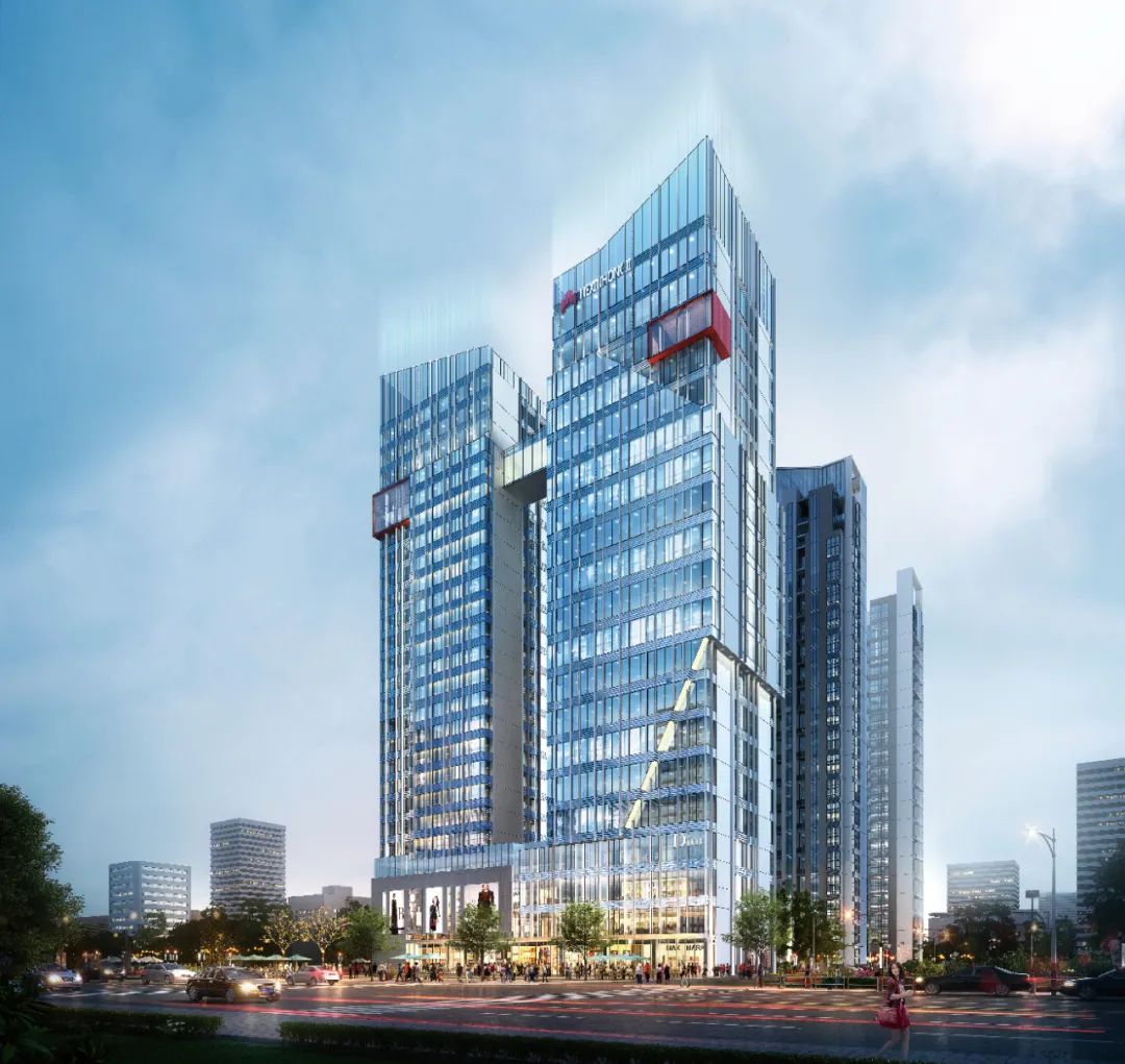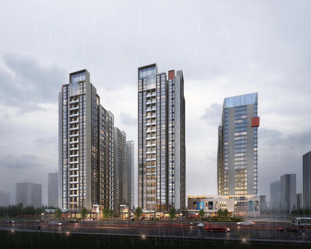 项目位于湖南省衡阳市衡州大道,作为衡阳高铁站进入城区的重要地标和门户形象之一,目前正在全面建设实施中。项目包含酒店、住宅和公寓等,一期公寓已开售。综合层高等特殊因素,项目实际容积率达6.0,统筹日照间距与环境品质和城市形象是设计的挑战。