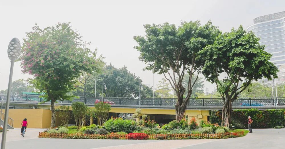 在中部休闲活动区,围绕广州解放纪念碑展开的市民活动广场,纳入了现状地铁站、海珠桥两侧步行匝道、桥底通道等空间。在疏林花景游赏区,在保留现有的乔木基础上,疏枝、清杂,整理出良好林下空间,结合主题花景、林下花径,形成疏林-草地-花境的绿地空间。