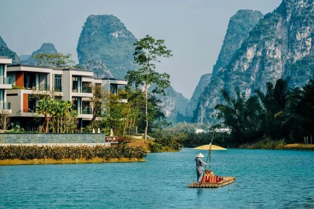 从酒店出来,旁边就是明仕河,步行就能到达明仕田园景区,倒映在水面的喀斯特山峰,秀丽的山水田园,在这里度假,就像在与自然低调对话,自然又舒适。