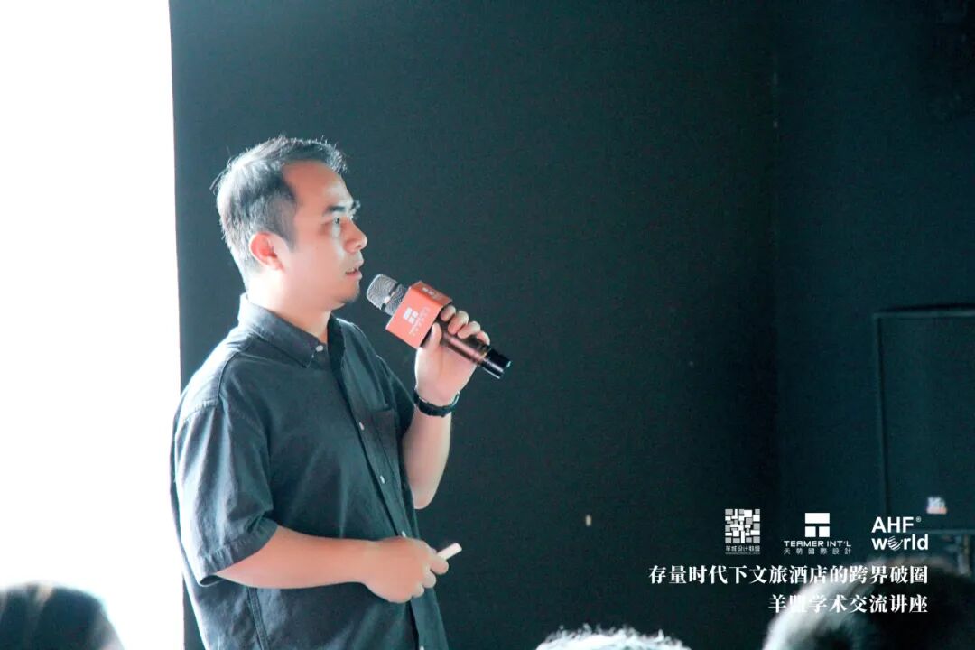 本次交流讲座上,天萌国际设计董事罗轶在现场以“度假酒店设计新探索”为主题,对近代国内酒店行业发展做出细致分享,并以崇左秘境丽世度假村为例,让大家对度假酒店有新的看法,提供了新的设计思维。