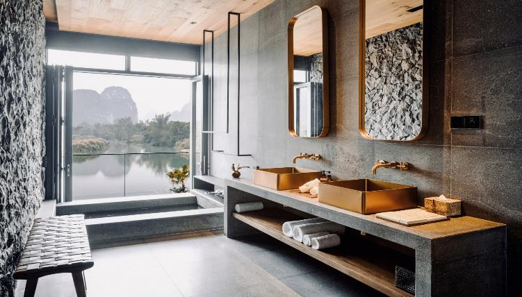 在开敞的山水环境中,我们更多强调由内而外的视觉效果。从大堂、餐厅,到客房、卫生间等,每一个空间都以“建筑为框,山水为画”,让疲于城市喧嚣的旅客,在这里找到属于自己的一方天地、一方纯净。