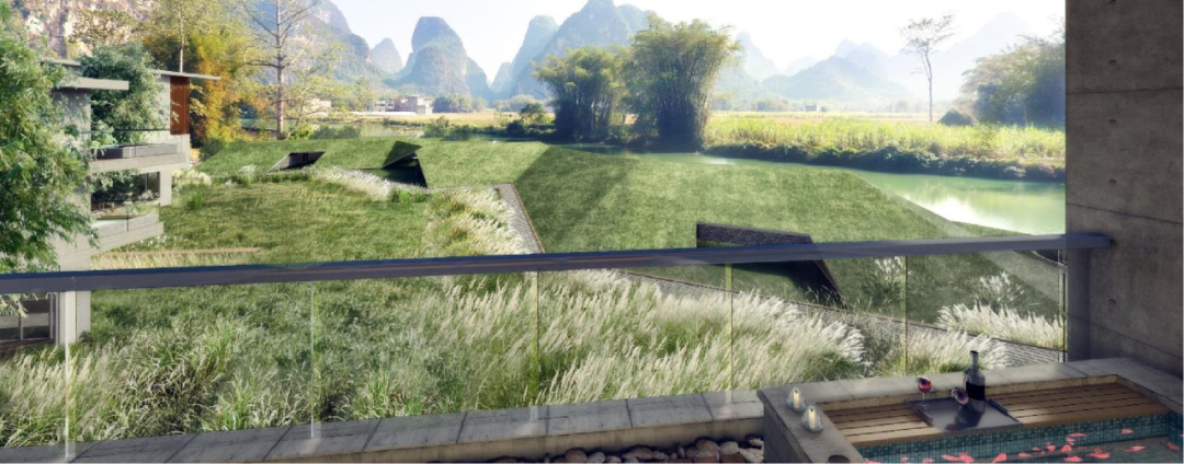 设计拓宽巩固河道、在河岸建造出弹性滨水景观,旅客可以在山水中环绕中享用竹筏下午茶。舒适的度假活动完全融入于原生态的大环境中,营造出河畔漫旅的生活艺术。