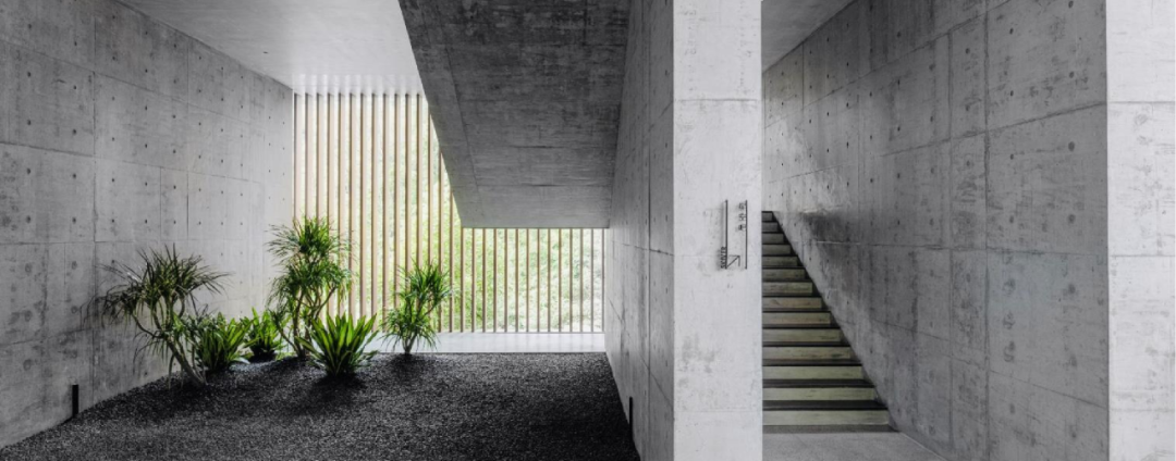 从西面跨水而来,走过幽静的林荫路,到达序厅,通过通透升降梯再进入大堂,步入风光无限的取景框,在行走中探索自然之美。这是天萌建筑设计团队利用空间序列节奏,创造出先抑后扬的体验感,让人行走于自然,心醉于自然。
