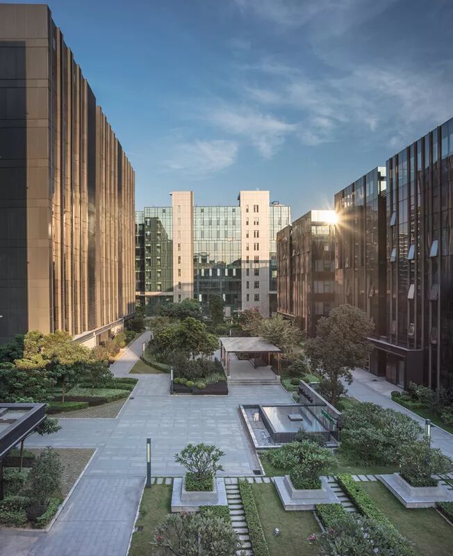 项目位置位于比较复杂的城市肌理中,如何形成一个强有力的视觉形象和与外部环境迥异的独立的园区环境,显得非常重要。迈思的这个设计抓住了项目的场地特点,获得了较好的效果。