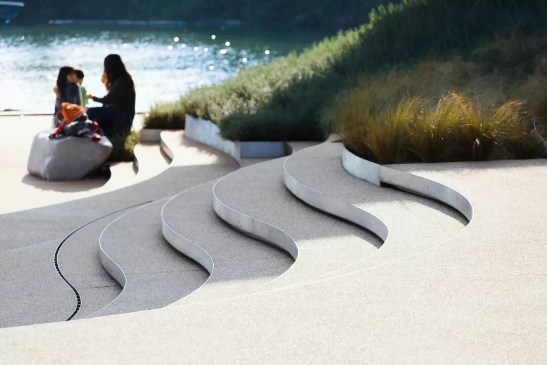 艺展公园是滨水公园项目中为数不多的将立体空间艺术性表达的恰到好处的设计。场地中的硬软景比例恰当,在生态的基底中轻描淡写的刻画了几笔,便激活了整个场地。
