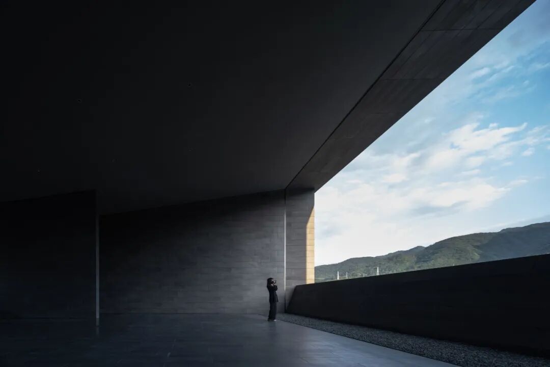 自然山水一直都是最佳的生活场景,在建筑空间构思时,便为室内创造自然框景,将远处的太白山脉景观收纳入建筑内部;开敞空间和框景空间给观赏太白山脉的风卷云舒提供了多维度、多层次的可能性。